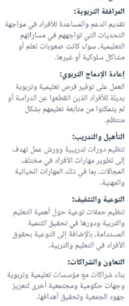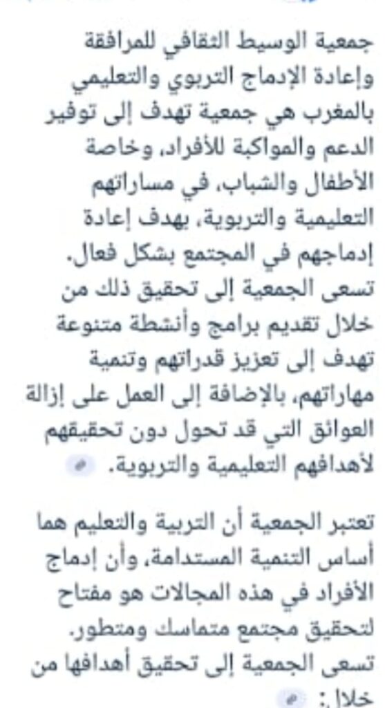 Die Akademie betrachtet sich selbst als Teil der Lösung für die Herausforderungen, vor denen das marokkanische Bildungssystem steht. Sie ruft zur Schaffung einer gerechten Gesellschaft auf, die allen gleiche Bildungschancen bietet – durch individuelle Unterstützung, alternative Bildungswege und institutionelle Zusammenarbeit.Unser Fokus:Bildungsunterstützung für Lernende, die akademische oder soziale Barrieren überwinden müssen.Wiedereingliederung von Schulabbrechern.Schulung zur Stärkung praktischer Fähigkeiten.Sensibilisierung für das Menschenrecht auf Bildung und nachhaltige Entwicklung.Aufbau lokaler und internationaler Partnerschaften – beispielsweise mit Bildungsträgern und ausländischen Missionen.