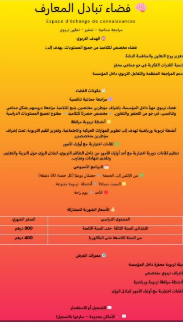 Espace d’échange de connaissances فضاء تبادل المعارف Espace d'échange de connaissances Home About us Services Kontakt أكاديمية الوسيط الثقافي A M I 🇩🇪 Kontakt: 📞 +212 6 13 01 66 42 🇫🇷 Contact : 📞 +212 6 13 01 66 42 🇲🇦 اتصل بنا: 📞 +212 6 13 01 66 42 🇩🇪 E-Mail: 📧 [email protected]🇫🇷 Courriel : 📧 [email protected]🇲🇦 البريد الإلكتروني: 📧 [email protected]
